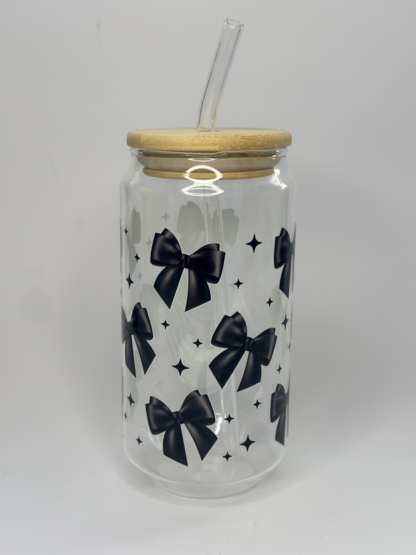 Stylová sklenice na nápoje s víčkem a skleněným brčkem
