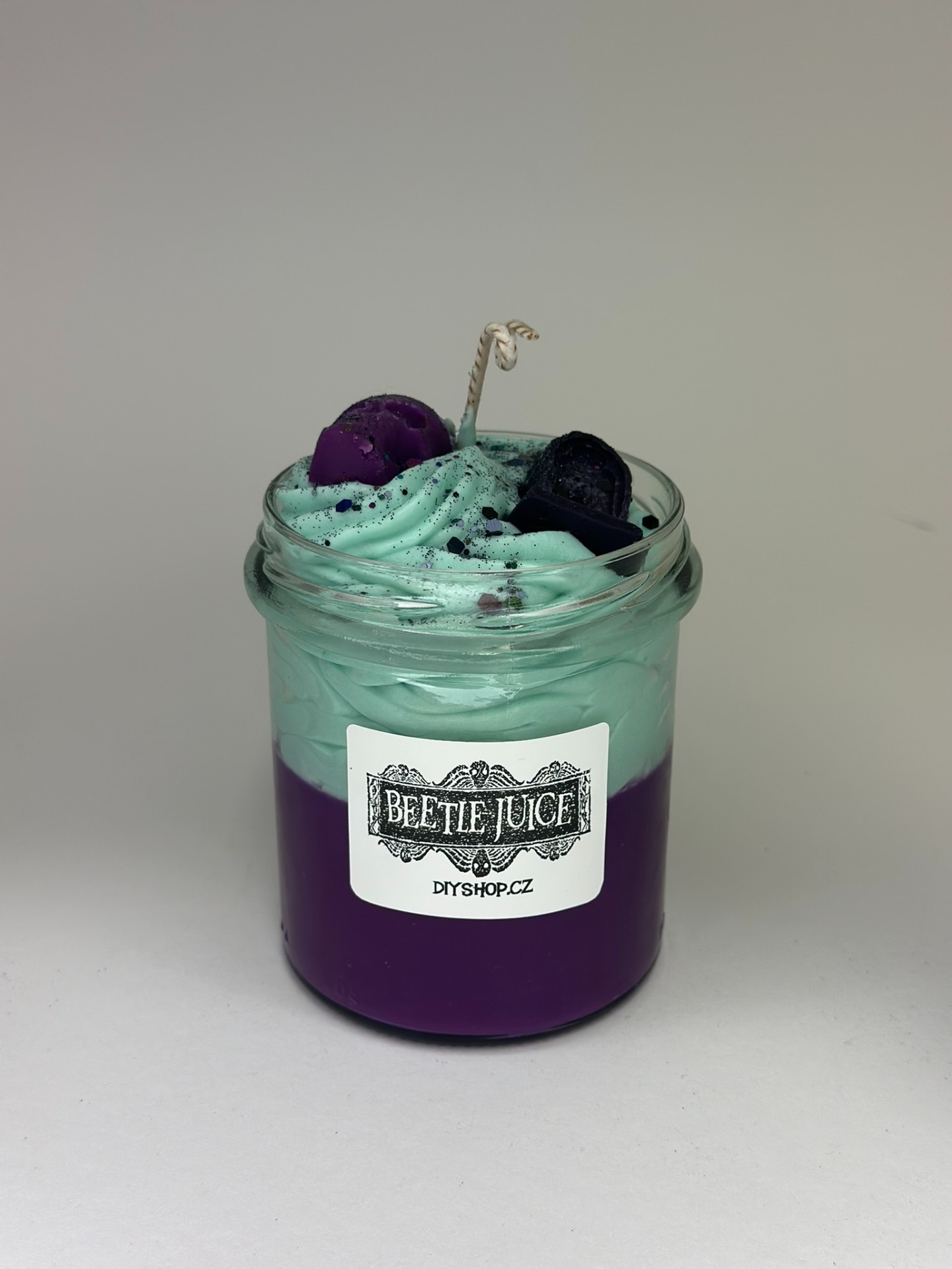 100 % sójový vosk, bavlněný knot, parfémová směs "Dýňové koření", barvivo, voskové dekorace